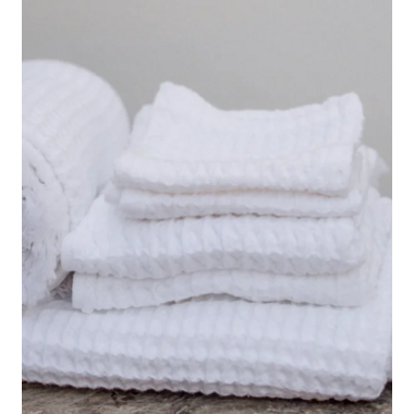 Their Bath collection is composed of 100% Turkish Cotton and pre-washed to prevent shrinkage. The waffle fabric can shrink slightly in the wash but will stretch back out when used. The products can be washed in warm water at a maximum of 30C. Avoid fabric softeners because they contain silicon that will make the pieces water repellent. Please do not dry clean or bleach. Regular ironing, steam or dry, may be performed at medium setting. Wash only with other Waffle Towels to ensure longevity.