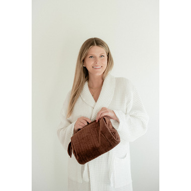 The Beauty Bag is for all of your beauty essentials. The crushed velvet is soft to the touch with a dreamy matching zipper pull. Help take your toiletry game to the next level with this plush beauty that is perfect for travel or throwing in your everyday tote.