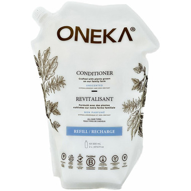 At Oneka, they believe that time in the shower is an act of self-care, a moment to pause, reboot, and connect to ones essence. Their haircare products are crafted from organic plants carefully chosen for their toning, nourishing, and pH-balancing properties. Specifically formulated for sensitive scalp and hair, Unscented Conditioner is the second step of a gentle, truly fragrance-free hair care ritual. All the benefits of an Oneka conditioner: the same core botanical formula promoting healthy beautiful hair naturally, just no essential oils in this version. As part of the Oneka unscented line, it is a great option for parents who want to maintain a neutral scent around babies and small children.