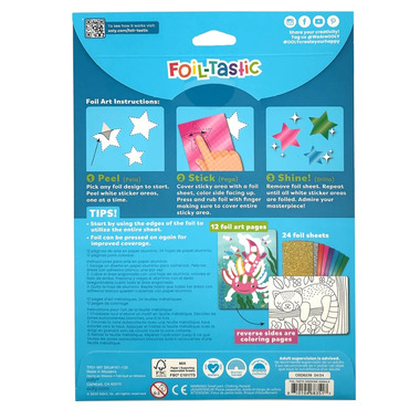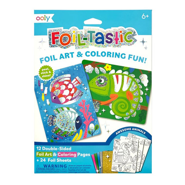 How do you know when a fish is having fun? When it shimmers with happiness! And thats just what it'll look like when your little one uses this foil art kit. With 12 individual, double sided pagesone side for foil art and the other for a coloring page your kiddo can spend the afternoon letting their creativity shine! Each design features a different adorable animal thats just waiting to get all gussied up according to your childs imagination. 24 foil sheets are included, so theres no limit to what they can create with this art set!