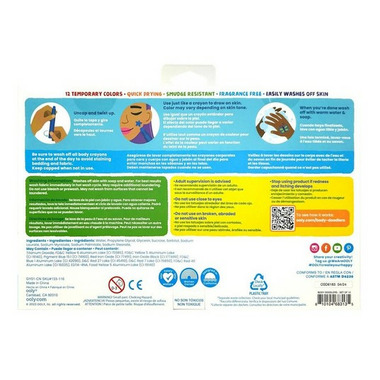 Are you feeling like a clown? A punk rocker? A human flower? Express those whims with this set of face and body crayons! It includes 12 temporary colours so you can transform yourself into whatever you dream up, and then easily wash it off whenever you want. Each non-toxic body crayon twists up so you can add more colour whenever you need. Body art crayons are great for adding activities like face painting to a birthday party, or for turning a humdrum afternoon into a creative adventure! Great for ages 6 and up.