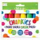 A starter set of Chunkies Paint Sticks in a travel-friendly pack of 6! These paint sticks are easy to hold and come in 6 classic and quick drying colours. You can twist up barrels for long-lasting, mess-free fun that kids and adults alike will love. Ages 3 and up.