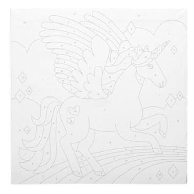 Start with the generous canvas with the numbered Magical Unicorn outline that has large spaces for painting. Match the numbers to the 10 included numbered paint tubes and apply with your choice of 3 different tipped paint brushes. To ease application a painters palette is also in this all inclusive paint by number set. Colorific Canvas Kits Include everything you need to create 1 paint by number canvas art making it a perfect gift idea!
