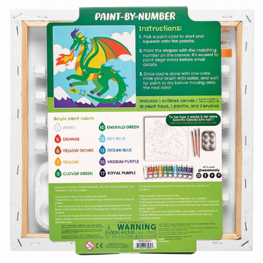 Start with the generous canvas (11.8 x 11.8 inches), with the numbered Fantastic Dragon outline that has large spaces for painting. Match the numbers to the 10 included numbered paint tubes and apply with your choice of 3 different tipped paint brushes. To ease application a painters palette is also in this all inclusive paint by number set. Colorific Canvas Kits Include everything you need to create 1 paint by number canvas art making it a perfect gift idea!