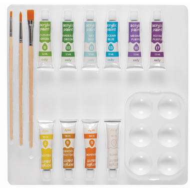 - Includes a 11.8 x 11.8" outlined canvas, 10 paint tubes, 1 palette and 3 paint brushes