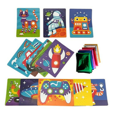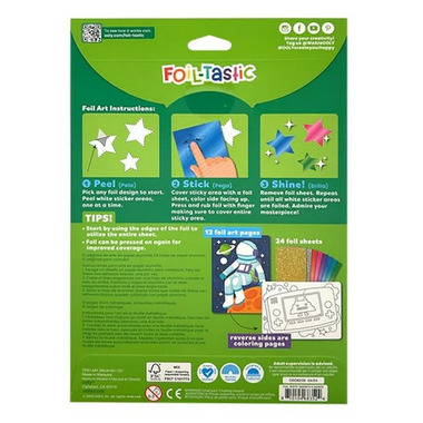 These foil art and colouring sets are perfect for on-the-go crafting and keeping little hands busy. Peel to reveal sticky sections for pressing your foil onto, and flip to colour cute vignettes. Includes 12 double-sided loose pages with foil art on one side and colouring pages on the other. 24 foil sheets to decorate the foil art side. Great for ages 6 and up.