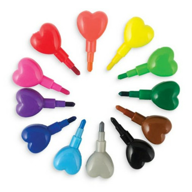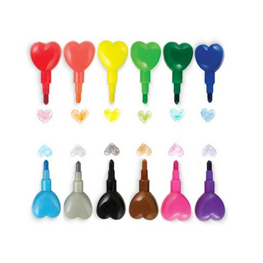 Show how much you L.O.V.E to color with this stackable heart crayon set! Cute, compact, and oh so colorful, the Heart to Heart stacking crayons are perfect for color lovers everywhere. Choose a shade, color your masterpiece, and then simply pull apart the stack to reveal the defined tip of your next shade choice, stacking the remaining crayons on top. If you're coloring with friends, just pull apart the individual hearts to share the love!