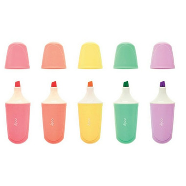 Highlighting doesn't have to be basic! Say au revoir to boring bright yellow, and bonjour to pretty pastels with this unique set of le bonbon patisserie pastel highlighters. These sweet highlighters come in 5 soothing shades so you can highlight your notes, books, or study materials with pastel rainbow flair. The small, wide barrels make them easy to handle, and they are perfect for throwing in a backpack for highlighting on the go!