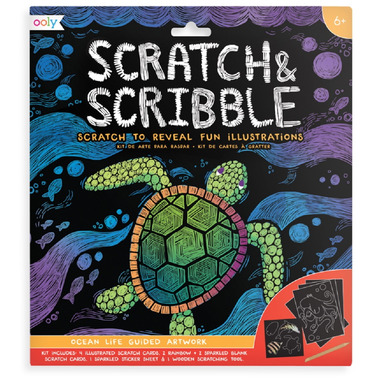 Ocean Life Scratch and Scribble scratch art kits let you scratch away the black to reveal a rainbow of vibrant colors with every stroke.