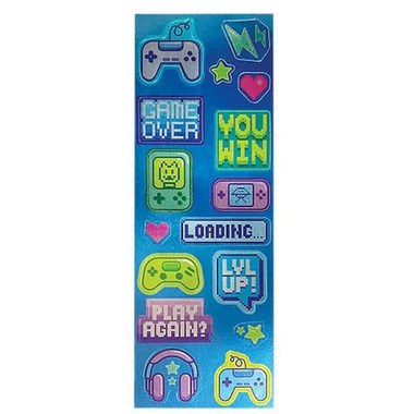 Show off your love of video games with these whimsical sticker sheets from the Stickiville collection. These metallic foil stickers are perfect for taking your accessories to the next level! So go ahead and stick em on your controller, laptop case, or any spot that needs to level up! Great for ages 3 and up.