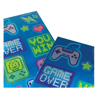• Includes two sticker sheets of gamer-themed stickers