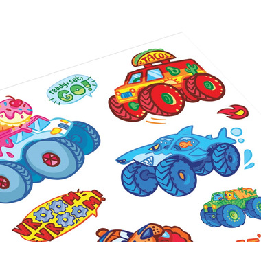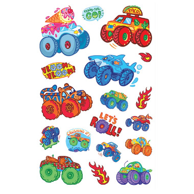 These amazing monster truck stickers include an awesome variety of monster trucks - each one with its own unique design. Theres something for every big-wheeled fan! These epoxy stickers are a fun and imaginative addition to your monster sticker collection!