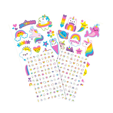 Show off your own unique style with these nail stickers and temporary tattoos! Perfect for whenever you're feeling fashionable and you need that little something extra to express yourself, these unicorn and rainbow tattoos will give you that special zhuzh! Great for birthday parties and special events, this kit is jam-packed with over 225 easy-to-apply nail stickers and temporary tattoos for kids. Each one has a sweet unicorn and rainbow theme, and is designed in a fun, rainbow color palette. They're perfect for making afternoons playing dress up even more fun!