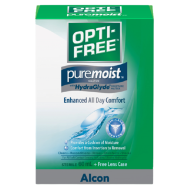 Opti-Free Pure Moist is a Multi-Purpose Disinfecting Solution for comfort and moisture from insertion to removal. Removes protein deposits and reduces lipid deposition for silicone hydrogel and soft contact lenses. Cleans. Recondition. Rinses. Disinfects. Stores. Sterile.
