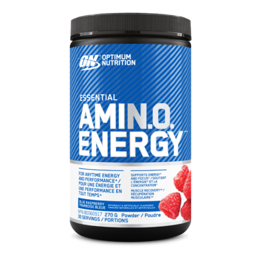 Essential AMIN.O. ENERGY powder mix supports energy with 100mg of caffeine from natural sources per serving* and post-workout muscle recovery with 5g of amino acids per serving. Its formulated for active people at every level of fitness who want a mild pre-workout energy boost or to maintain energy during physical activity.