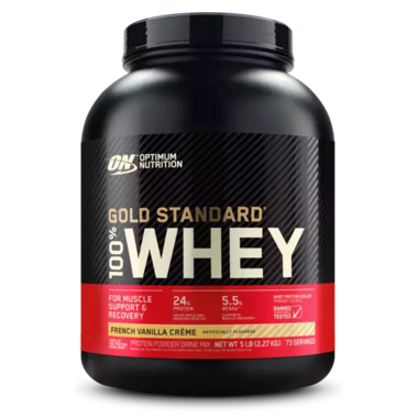 Optimum Nutrition's Gold Standard 100% Whey uses pure Whey Protein Isolates as the primary ingredient. Combined with ultra-filtered whey protein concentrate, each serving provides 24 grams of all-whey protein and 5.5 grams of naturally occurring Branched Chain Amino Acids (BCAAs) which are prized by athletes for their muscle building qualities. With more than 20 tempting flavors to choose from, ONs Gold Standard 100% Whey gives you plenty of ways to keep workout recovery interesting.