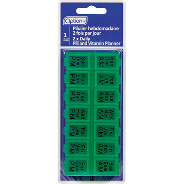 1 Daily pill planner with 14 compartments - two for each day of the week
