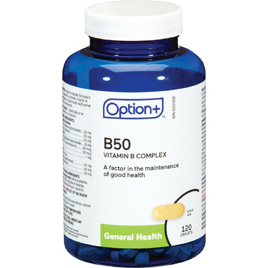 Medicinal Ingredients: Each Caplet Contains: Vitamin B1 (Thiamine Hydrochloride) ....50 Mg Vitamin B2 (Riboflavin) ....................... 50 Mg Niacinamide...................................... 50 Mg Vitamin B6 (Pyridoxine Hydrochloride) ....50 Mg Vitamin B12 (Cyanocobalamin) ........ 50 Mcg Biotin .............................................. 50 Mcg Folic Acid ............................................ 1 Mg Pantothenic Acid(Calcium D-Pantothenate) ................ 50 Mg Choline (Bitartrate) ............................ 50 Mg Inositol .............................................. 50 Mg Non-Medicinal Ingredients (In Descending Order): Microcrystalline Cellulose, Paba, Magnesium Stearate, Coating (Carbohydrate Gum, Glycerin). Contains No Artificial Preservatives, Colours Or Flavours, Gluten Or Yeast.