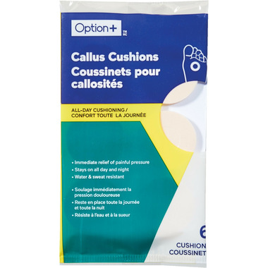 Directions: Cleanse and dry feet. Remove protective backing from cushion. Position hole in cushion over callus area and apply cushion