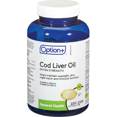 Cod Liver Oil Extra Strength. Helps maintain eyesight, skin, night vision and immune function. Cod Liver Oil 1100mg, Vitamin A 2500IU, Vitamin D3 400IU