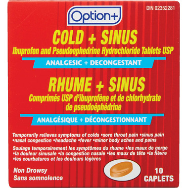 - Temporarily relieves symptoms of colds ,sore throat pain ,sinus pain ,nasal congestion, headache, fever, minor body aches and pains Non Drowsy Analgesic + Decongestant