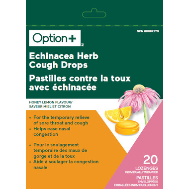 Option+ Echinacea Herb Cough Drops Honey Lemon