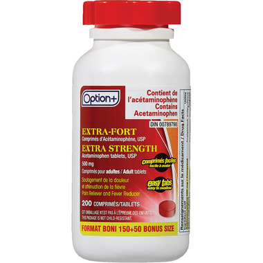 Warning: Liver warning: Acetaminophen may cause severe or possibly fatal liver damage if you take: more than the recommended dose in 24 hours, with other drugs containing acetaminophen, while drinking 3 or more alcoholic drinks every day. Symptoms of liver damage may include yellow skin or eyes, dark urine, sweating, nausea, vomiting, stomach pain, unusual tiredness, loss of appetite. Allergy alert: Acetaminophen may cause serious skin reactions. Symptoms may include: skin reddening, blisters, rash. If any of the above noted symptoms occur, stop use and seek medical help right away. Do not use with any other drug containing acetaminophen, if you are allergic to acetaminophen. If you are not sure whether a drug contains acetaminophen, ask a doctor or pharmacist. Ask a doctor or pharmacist before use if you have liver or kidney disease, take the blood thinning drug warfarin are pregnant or breastfeeding. Stop use and ask a doctor if pain lasts for more than 5 days, fever lasts more than 3 days. Keep out of reach of children. This package contains enough drug to seriously harm a child. In case of overdose, call a Poison Control Centre or get medical help right away. Quick medical attention is critical even if you do not notice any signs or symptoms.