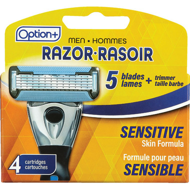 Men's Razor Refills 5 Blade cartridges with trimmer edges 4-pack. Sensitive Skin Formula.