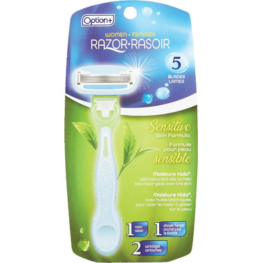 Women's 5 Blade Razor Sensitive Skin Formula. Moisure Halo with botanical oils to help the razor glide over the skin.