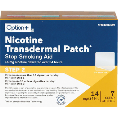 Caution: KEEP OUT OF THE REACH OF CHILDREN AND PETS. Used patches have enough nicotine to poison children and pets. Օ Do not smoke, use nicotine chewing gum or use any other form of nicotine while using nicotine patches. If swallowed, get medical help or contact a Poison Control Centre right away. Do not use nicotine patches if you are pregnant or nursing a child. Avoid becoming pregnant while using nicotine patches. If you think you are pregnant remove the nicotine patch and see your physician. Օ Do not use for more than 8 weeks without consulting a physician. Remove the nicotine patch and consult your physician if you experience irregular heartbeat, chest pain, palpitations or leg pain occurs or if severe persistent stomach upset (indigestion, heartburn) develops. Օ If the area under the patch becomes swollen or very red, or if you develop a rash, remove the patch and call your physician. You could be allergic to one of the components of the patch. Remove the transdermal patch 2 hours before engaging in prolonged strenuous exercise. Ask a physician or pharmacist before use if you are: Օ using a non-nicotine stop smoking drug. taking a prescription medicine for depression or asthma. Your prescription dose may need to be adjusted. When using this product: Օ Do not smoke even when not wearing the patch. The nicotine in your skin will still be entering your bloodstream for several hours after you take off the patch. If you have vivid dreams or other sleep disturbances remove this patch at bedtime. DO NOT USE NICOTINE PATCHES IF YOU: are under 18 years of age; are an occasional or non-smoker; are pregnant or nursing a child; have generalized skin conditions or allergies to adhesive tape or bandages. Ask a physician before use if you: Օ have ever had a heart attack, angina, heart arrhythmias or a stroke have or have ever had high blood pressure, heart disease, thyroid problems, blood circulation or stomach problems, stomach ulcers, kidney or liver disease, diabetes requiring insulin, stroke or treatment of circulation disorders of the brain, allergies to drugs, or have had any allergies to adhesive tape or bandages. Օ are taking any prescription medications.