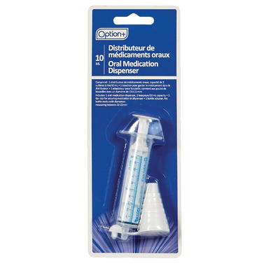 Includes: 1 oral medication dispenser, 10 mL capacity 1 tip- cap for securing medication in dispenser Օ 1 bottle adapter, fits bottle necks with diameters measuring between 13-22mm