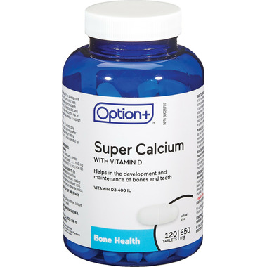 Super Calcium with Vitamin D. Helps in the development and maintenance of bones and teeth. Calcium 650mg, Vitamin D3 400IU