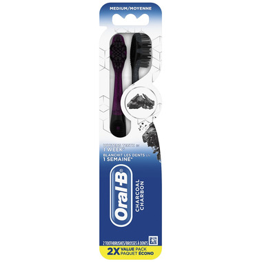 The Oral-B Charcoal Whitening Therapy toothbrush features charcoal infused bristles! It whitens teeth by removing surface stains. PowerTip bristles help clean plaque in hard to reach places while Gum Massagers gently massage your gums and help clean along the gumline. Additionally, the Tongue and Cheek Cleaner work to gently clean your tongue and cheeks. Whitens teeth by removing surface stains.