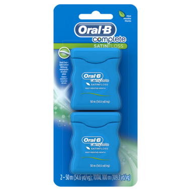 Oral-B Complete SATINfloss has a satin-like texture for comfortable flossing that helps remove plaque and particles between your teeth and just below the gum line.