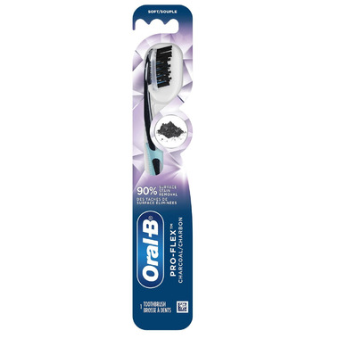 With the Oral-B Pro-Flex Charcoal Manual Toothbrush, you can discover a whiter smile and remove plaque. That's because its dual-flexing head design combined with stain erasing bristles, work together to remove up to 90% of surface teeth stains and reveal a more beautiful white smile.