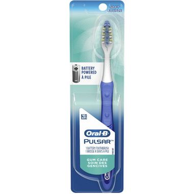 The Oral-B Pulsar Gum Care is a battery operated toothbrush with vibrating bristles to gently massage and stimulate your gums, and remove plaque. Using the same technique to brush as a manual toothbrush, the micro-pulse bristles pivot and pulse to penetrate deep between teeth. Pulsar is shown to reduce gingivitis and improve gum health, while promoting healthier, firmer gums. Just as easy to use as a regular manual toothbrush. Oral-B, the brand more dentists use themselves worldwide.