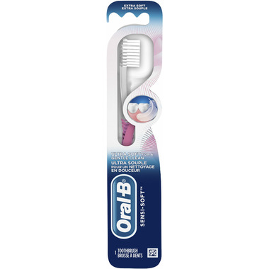 The Oral-B Sensi-Soft Manual Toothbrush helps add a gentle clean to your day. The ultra soft bristles provide gentle, yet effective cleaning on teeth and gums. Manual toothbrushes remove plaque and food from teeth to prevent decay.