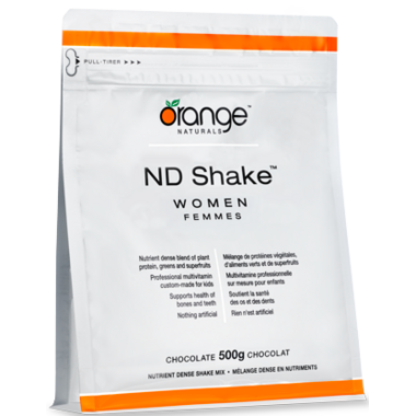 Orange Naturals ND Shake Women is the first nutrient dense shake customized for a woman's unique physiological needs. It combines a professionally formulated women’s multi with a blend of plant protein, greens, superfruits and fibre, plus nutrients specific to women’s health such as cinnamon for keeping blood sugar in check, calcium for bone health and cranberry for a healthy urinary tract.