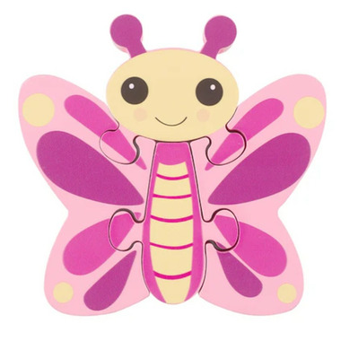 - This brightly coloured wooden butterfly puzzle is designed with simple, toddler-friendly pieces that support colour recognition and fine motor development while also encouraging storytelling and imaginative play once the cute character is assembled.