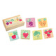 - A charming collection of six wooden puzzles featuring brightly coloured, cheerful vegetables, designed as ideal first puzzles for young children.