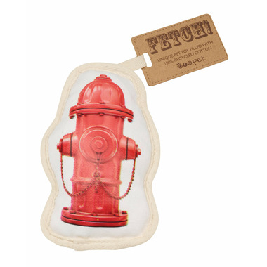 Keep your pooch from developing a paunch with our Fetch Pet Toys. Featuring recycled cotton stuffing with squeaker, a sturdy canvas contoured exterior and clever photorealistic graphics of a red fire hydrant.