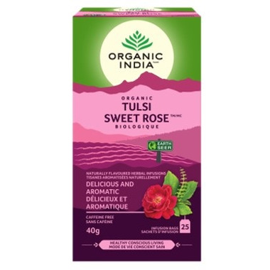 A delicate blend of Tulsi finely balanced with soothing chamomile, rose petals, and the fragrant essence of rose. The Tulsi herb is abundant in antioxidants and anti-inflammatory, antibacterial and antiviral properties, which help support immunity, aid digestion, and reduce stress.