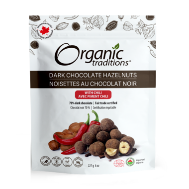 Organic Traditions Dark Chocolate Hazelnuts with Chili