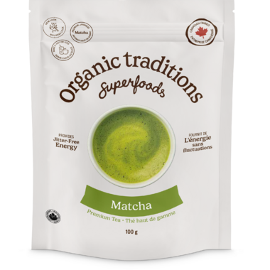 Organic Traditions Premium Matcha Tea made from green tea powder from Japan.