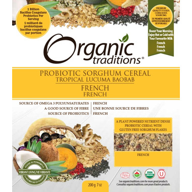 Boost your morning enjoy hot or cold with your favorite milk. Probiotic Sorghum Cereal, Tropical Lucuma Baobab French.