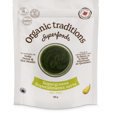 Organic super 5 grass juice blend* (alfalfa, barley, kamut, oat and wheat grass), Xylitol*, Chlorella*, Spirulina*, Moringa*, Gum acacia*, Pear flavour*, Matcha*, Turmeric extract*, Bacillus coagulans (Probiotic strain # MTCC 5856)