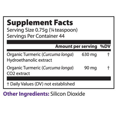 Ingredients: Organic Turmeric (Curcuma longa) Extract Powder, Silicon Dioxide.