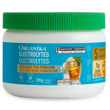 Make it summer everyday with refreshing iced tea. Organika’s Electrolytes are your go-to blend for an instant dose of thirst-quenching nutrients, 0 g of sugar, prebiotic fibre and 60 servings per bottle. The Electrolytes powder helps maintain normal water and electrolyte balance. The formula also contains soluble vegetable fibre, a prebiotic that helps support the growth of gut-friendly flora, promoting overall gut health. Simply add to water for a tasty and hydrating drink with 0 g of sugar.