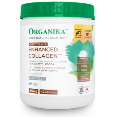 Collagen is the most abundant protein in healthy hair, skin, nails, and joints, providing them with strength, elasticity and tone. Organika’s Chocolate Enhanced Collagen is a decadent chocolaty treat, with 8 grams of pure hydrolyzed collagen per serving, sourced from grass-fed cattle. Packed with protein and sweetened with stevia, it is a convenient better-for-you beverage, served hot or chilled.