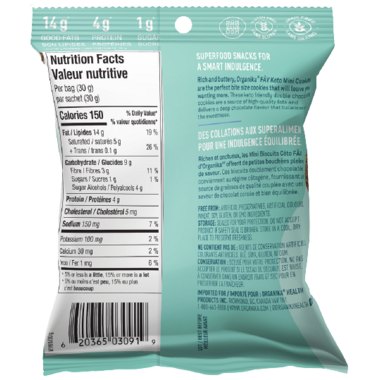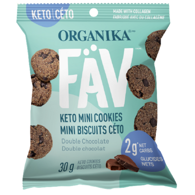 Rich and buttery, melt-in-your-mouth Organika FÄV Keto Mini Cookies are the perfect bite size treats that will leave you wanting more. These keto friendly cookies are a source of high-quality fats, with each crumbly bite delivering the right amount of flavour. Made with clean and simple ingredients and a touch of collagen, you can feel good about enjoying these decadent, low net carb treats on-the-go.